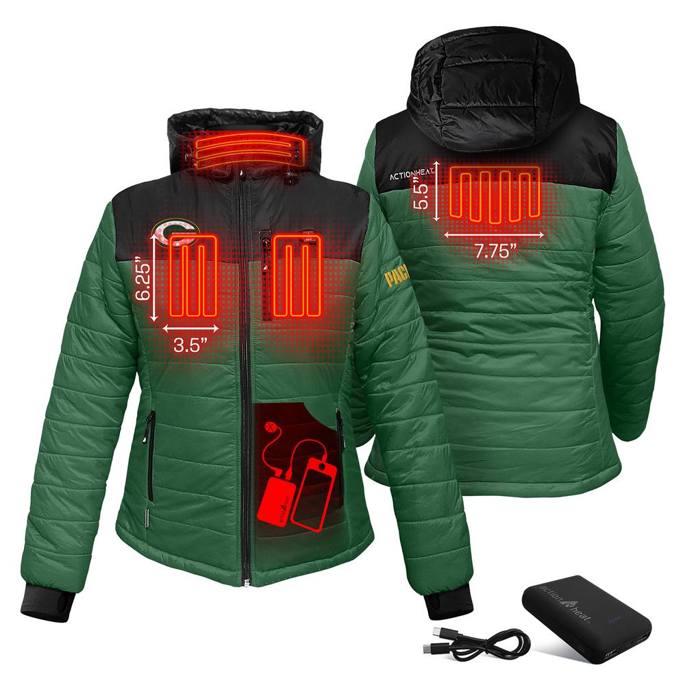 ActionHeat Green Bay Packers 5V Women's Colorblock Puffer Battery Heated Jacket