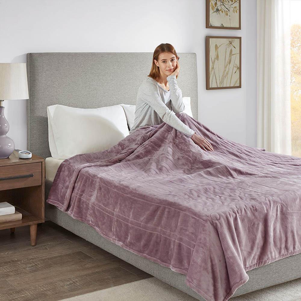 100% Polyester Knitted Solid Microlight to Solid Microlight Heated Blanket.