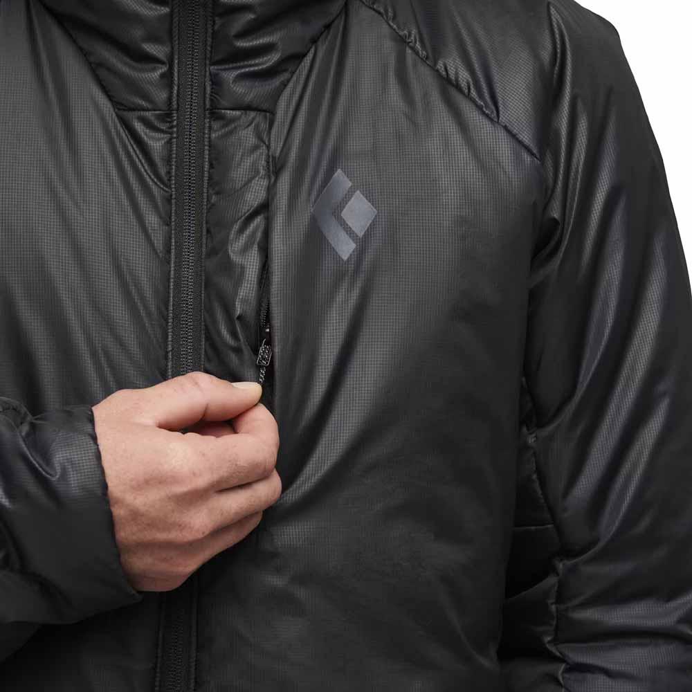 Completely redesigned in 2023 to endure bail-worthy belay conditions on single-pitch winter routes and huge alpine faces alike, the Black Diamond Belay Parka lets you hunker down while your partner battles it out on the sharp end. Our warmest synthetic jacket, the Belay Parka features 200gsm mapped Primaloft Rise, plus Primaloft Gold Cross Core, insulation throughout the body, shoulders, and hood. A 50D PFC-free ripstop shell protects from the elements while a 20D nylon taffeta liner adds an extra layer of warmth. A two-way zipper allows access to your belay device, and oversized hand, chest and internal drop pockets store gloves, water bottles and other on-route essentials.