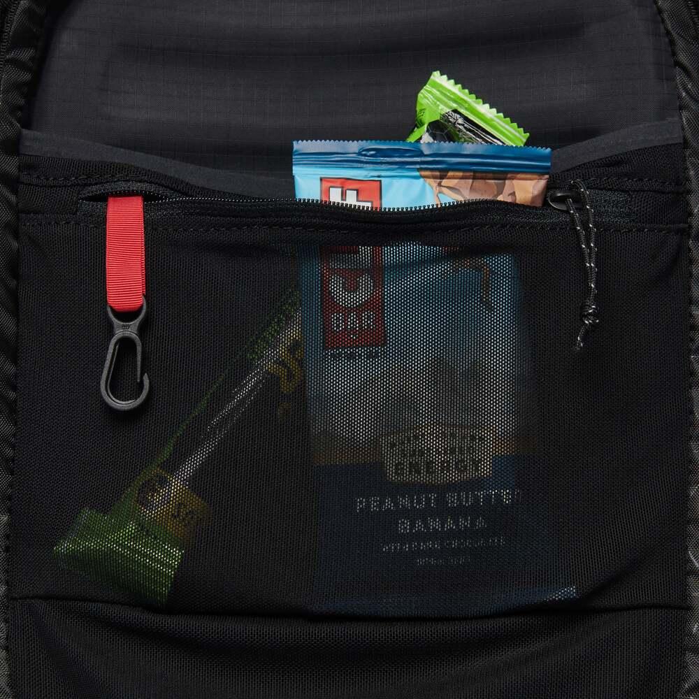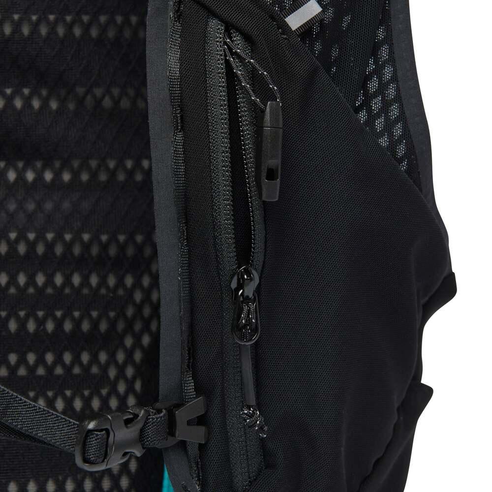 - Two soft flask pockets (soft flasks not included), two zip and two stretch shoulder strap pockets