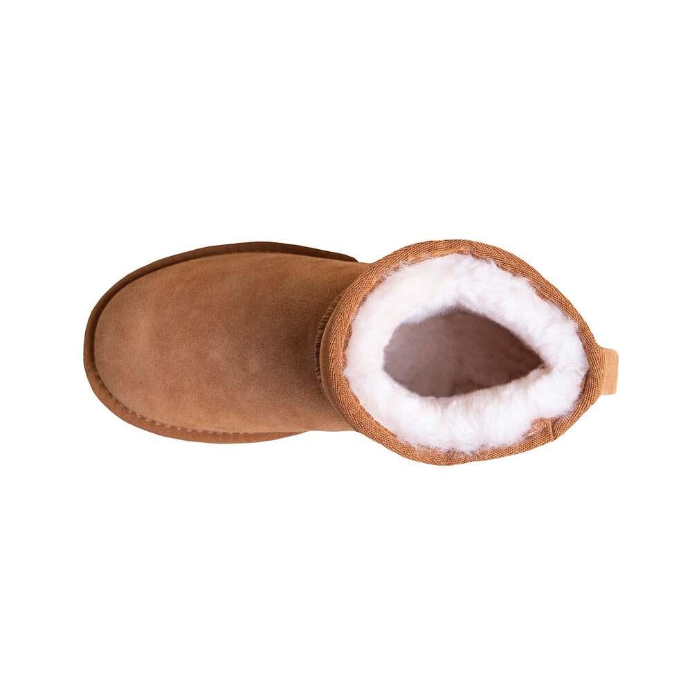 This classic short boot, sports a 100% sheepskin insole and a sheepskin blend lining, a suede upper and rugged rubber sole. It's design is timeless, it's comfort is enviable. Keep a pair in your closet for almost any occasion.