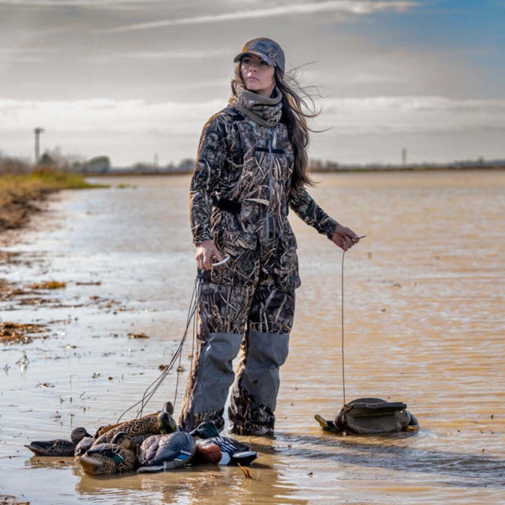 The Finley Waterfowl Bib is ready for wherever your blind is with DWR treated fabric, seal taped seams, and sherpa lining including 100 gram insulation. Create a comfortable, custom fit with adjustable suspenders and waist tabs. Articulated abrasion knee and seat panels add durability whether kneeling or sitting. These bibs have a drop seat feature for quick accessibility when nature calls. Four pockets store all your essentials and webbing loops at the chest can be used for the duck call lanyards on the Finley Jacket when the weather warms up. The Finley Bib has an adjustable inseam that adjusts to three different lengths.