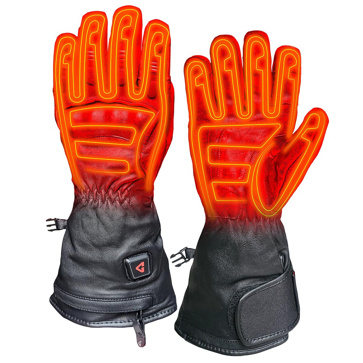 Each heated glove features an onboard temperature control button that regulates the temperature with three optimum heat levels. The 7.4V lithium battery is secured in a pocket on the top side of the gauntlet for increased freedom of motion during almost any outdoor activity.