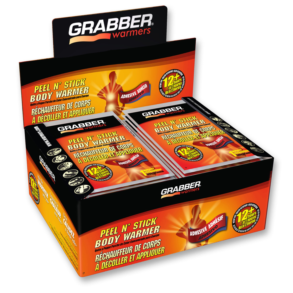 Grabber's Peel N' Stick Body Warmer is "the portable heating pad you can wear"! It provides soothing comfort for minor aches and pains, as well as extended everyday warmth during outdoor sporting activities. Simply stick your Adhesive Body Warmer to an inner layer of clothing to enjoy over 12 hours of heat. All Grabber Warmers are designed for one-time, disposable use.