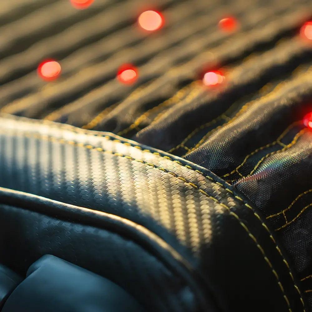 The Jet Pillow combines heated gemstone and far-infrared therapy to deliver deep-penetrating heat, specifically targeting the neck and shoulders, promoting muscle relaxation, faster recovery, and pain relief. It also features photon lights, offering benefits such as improved energy levels and reduced inflammation.
