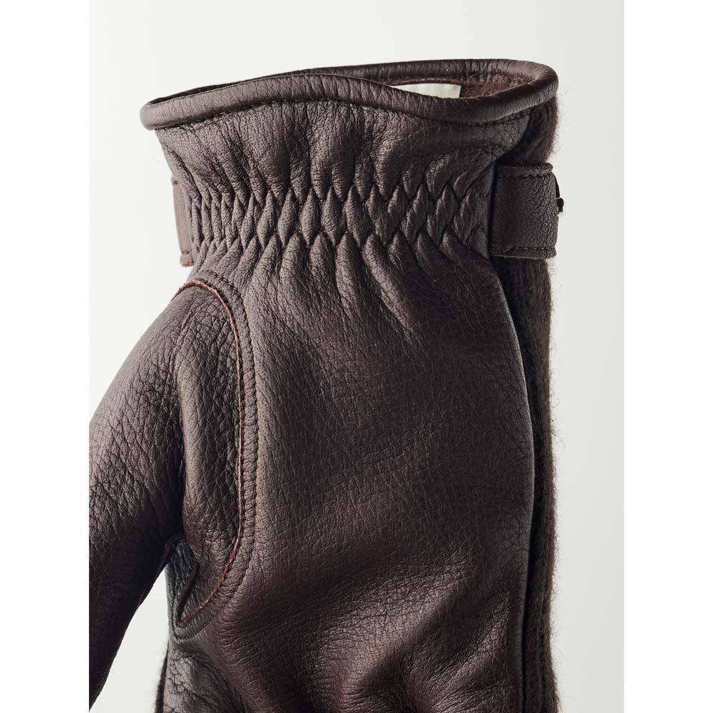 A stylish, minimalist glove in Scandinavian elk leather with the backhand in knitted cashmere - a combination of the finest materials for incredible comfort and feel. An exclusive version of Hestra's popular Christopher glove, carefully made by skilled glove cutters in Hungary. Inside there is a thin knitted cashmere lining for welcome warmth on chilly autumn and winter days.