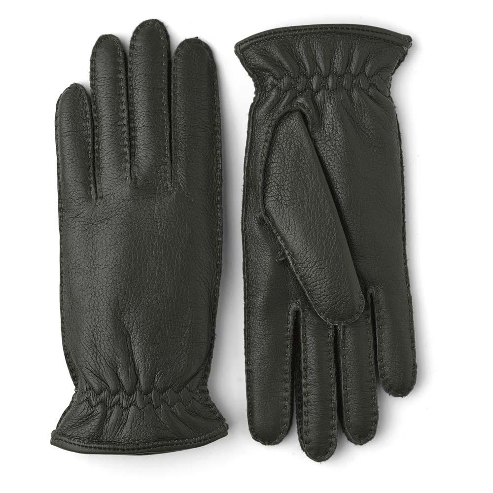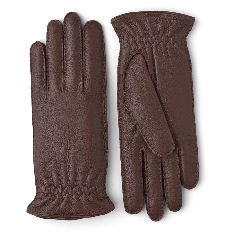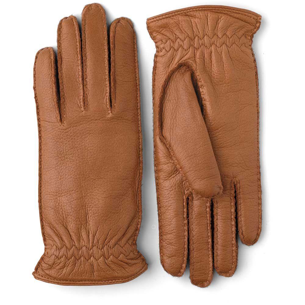 A stylish elk leather glove for men in a short style with a simple, streamlined design. This glove is cut by hand by glove cutters in Hestra's workshop in Budapest. Their sense for the material is unique, as is born out by the finished glove with its amazing suppleness and fit. The glove features handsewn seams and an elastic seam around the wrist. A knitted lining in the softest cashmere provides warmth and comfort on chilly autumn and winter days.