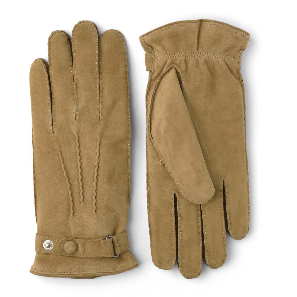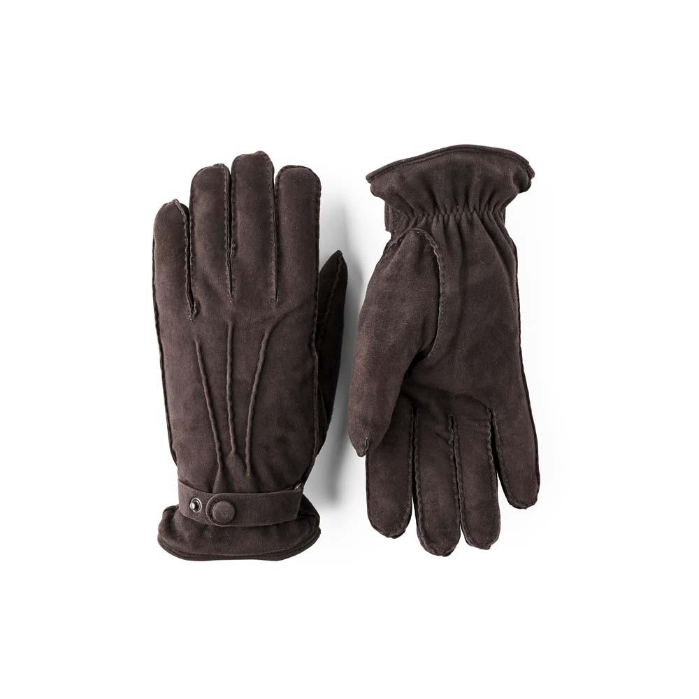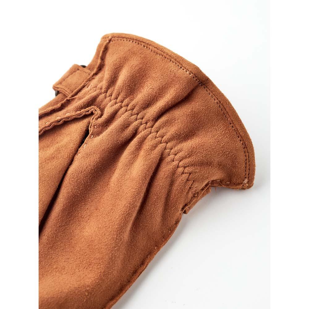 A timeless glove in the softest lambskin suede with a knitted cashmere lining. Cut and sewn by hand in Hestra's workshop in Hungary. The glove cutters' sense for the material is unique and their craftsmanship utterly superb, producing an incomparably supple glove. This glove has points on the backhand and a wrist strap with a covered press stud for the perfect fit. A classic that is beautifully warming in cold weather in autumn and winter.