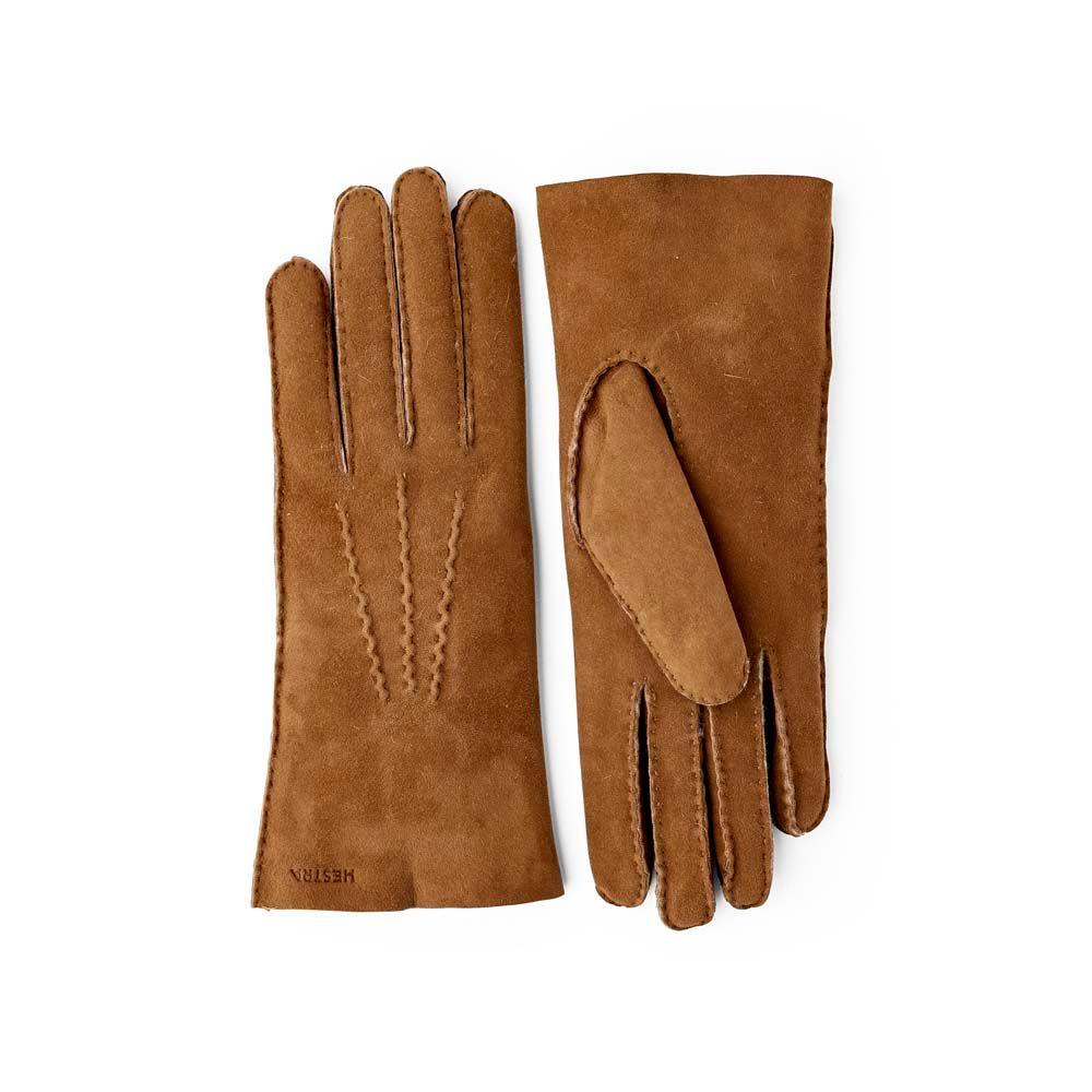 A soft, light women's glove in lambskin suede for comforting warmth on the coldest winter days. A timeless design sewn entirely by hand with the suede side turned outwards, while the fluffy lambskin envelops the hand in warmth. A beautiful, warming fashion accessory that works equally well for winter country walks and days in the city. Keep in mind that dyed leather can discolor when wet. Be careful in rain and sleet and be especially careful with light-colored clothing. Strong colors such as blue, green and red are extra sensitive.