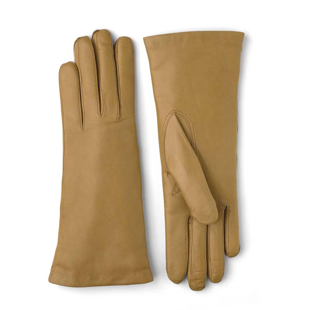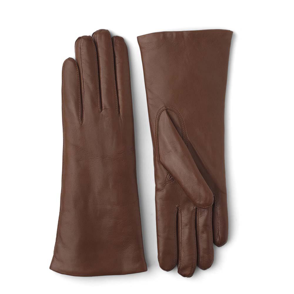 A classic women's glove with a knitted cashmere lining for a warming, soft, luxurious feel. The glove is cut by hand in Italian hairsheep leather, a soft, supple leather with superb sheen, in Hestra's workshop in Hungary. The design is close-fitting and the craftsmanship exquisite, with pique seams on backhand and palm.