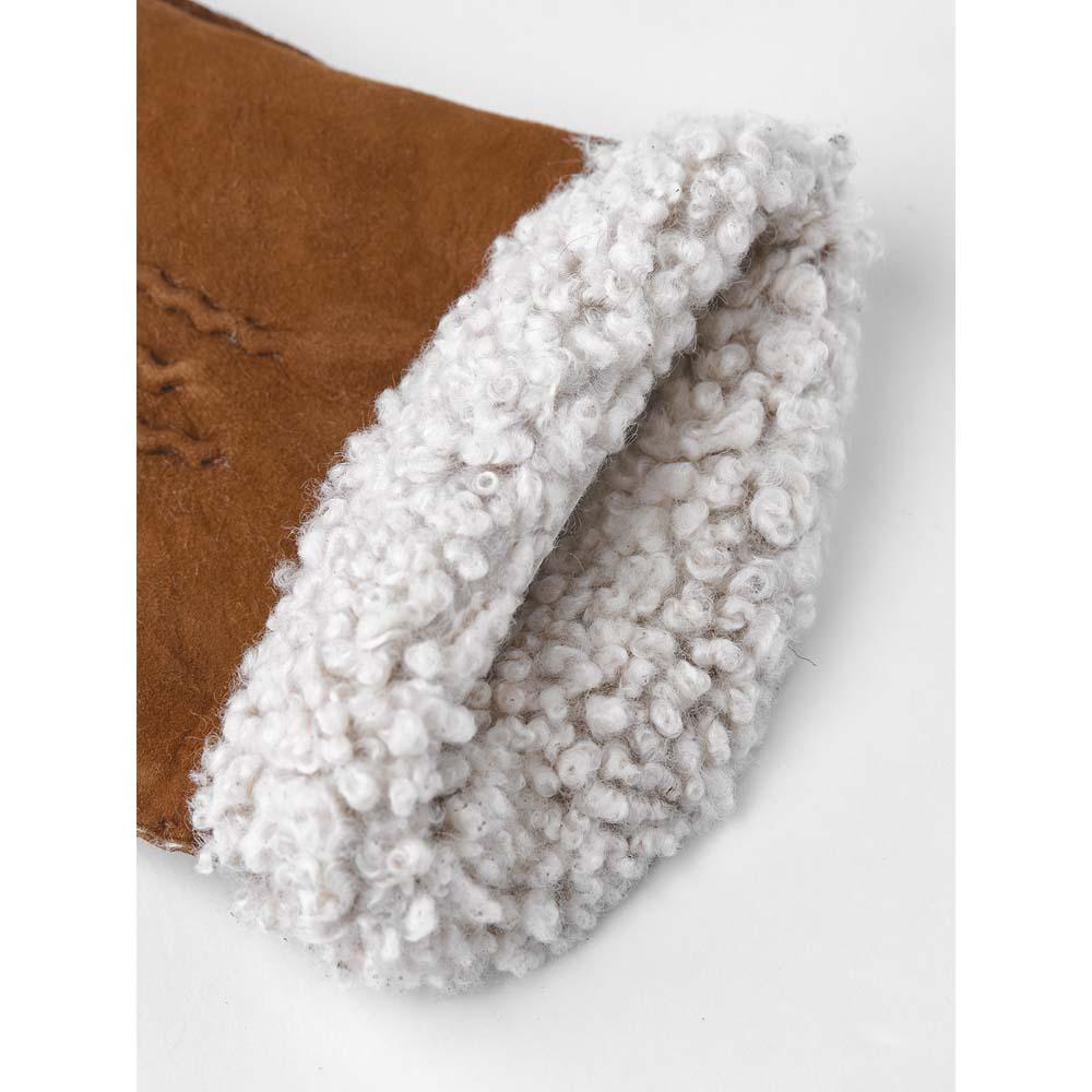 A light, warm, women's glove in the softest lambskin suede, this timeless design is cut and sewn by hand in Hestra's glove cutting workshop in Hungary. The glove has points on the palm and the cuff can be folded down to show more or less of the fluffy side. High-quality materials and skilled craftsmanship produce a glove with an incredible fit and feel, perfectly warming for colder days in winter.