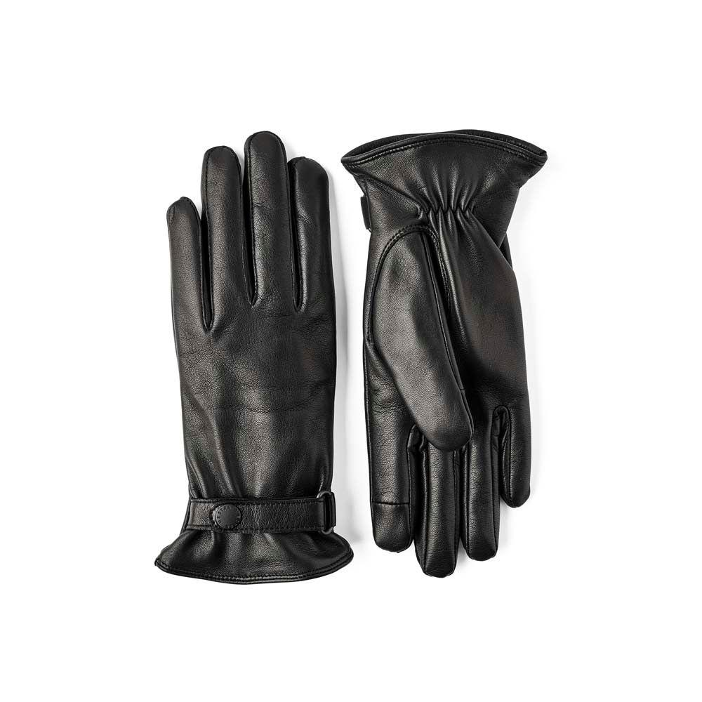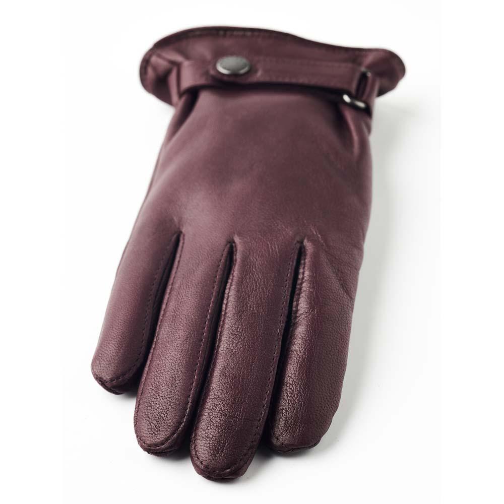 A classic glove in soft leather with a warming, knitted wool lining. This timeless design is slim-fitting with a decorative leather strap and press stud at the wrist. The glove is stitched in supple hairsheep leather, treated to produce a water-repellent surface, and the index finger and thumb are touchscreen compatible. The wool lining is beautifully warm, even if it gets slightly damp. Perfect for everyday errands and relaxing weekend walks in autumn and on the milder days of winter.