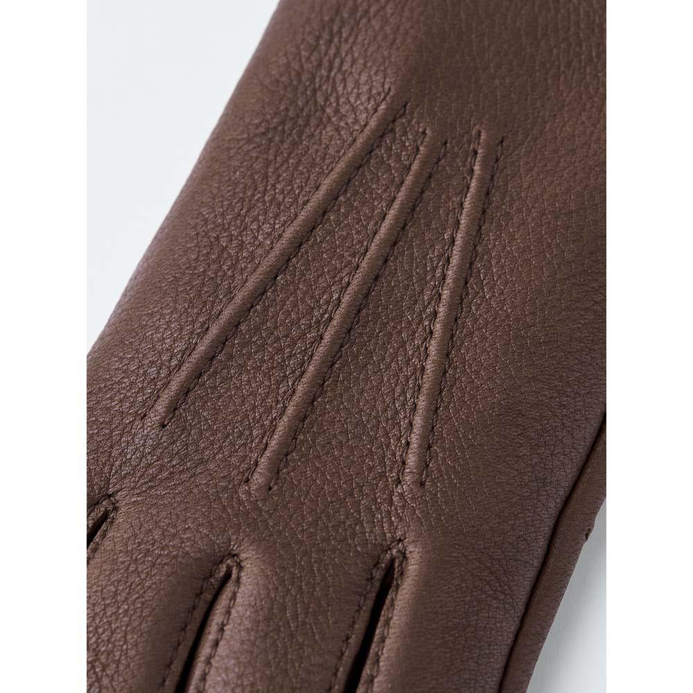 A soft and warm women's glove in classic style. A wonderful autumn and winter glove sewn in deerskin, a supple, insulating leather with a beautiful grain. It has decorative stitching on the backhand while a slit makes it easier to pull on. A thin, knitted wool lining keeps hands warm on chilly winter days.