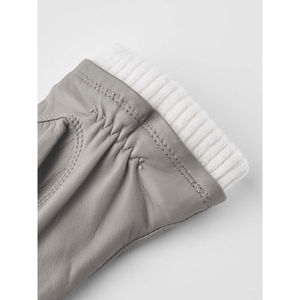 Smooth women's leather glove with ribbed cuff. Sewn in soft, stretchy lamb nappa with a close fit and a little elastic on the inner wrist. A soft knitted wool blend lining provides light warmth on chilly autumn and winter days.