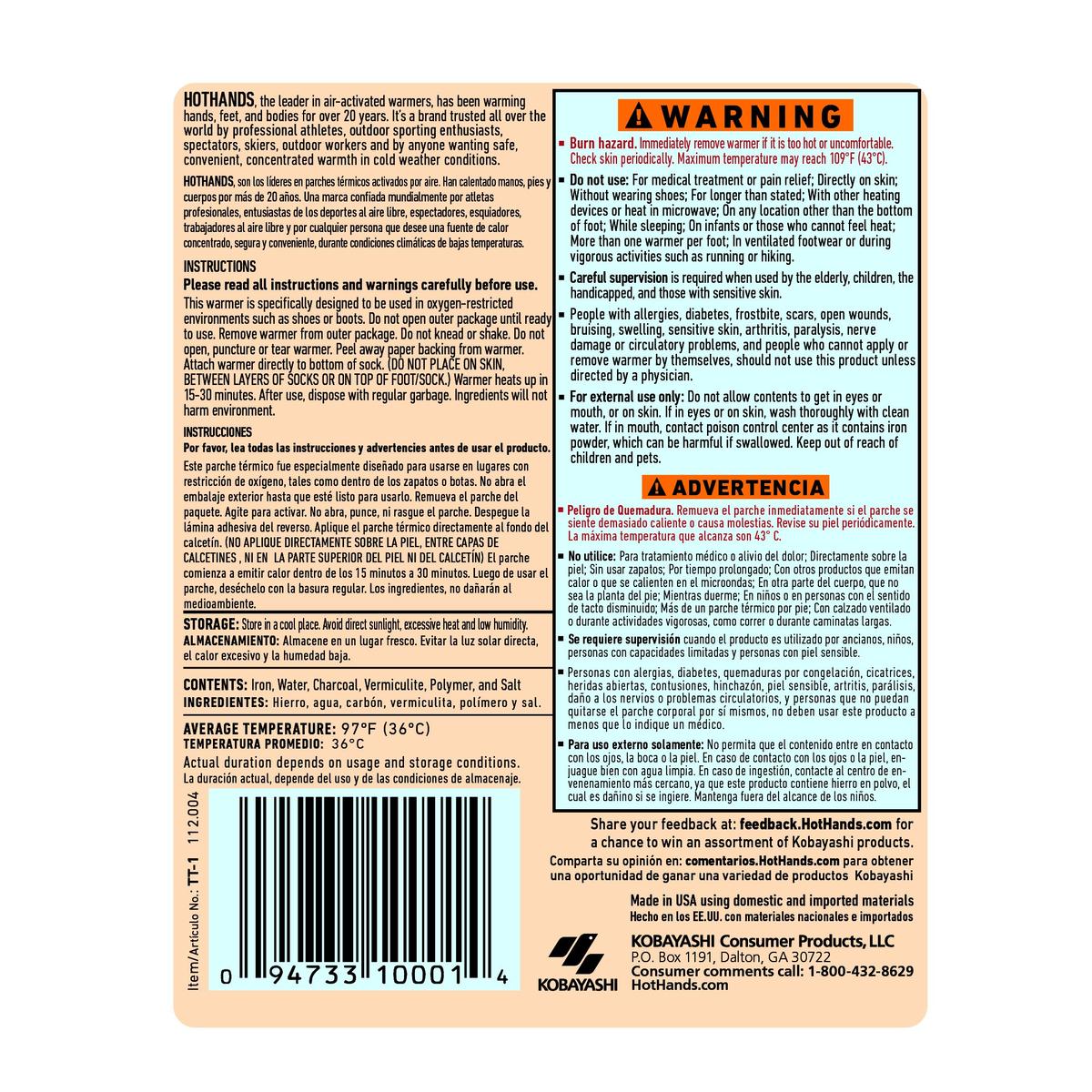 Hothands Toe Warmers are rectangular shaped single-use air-activated heat packs that provide up to 8 hours of continuous warmth for the toes.
