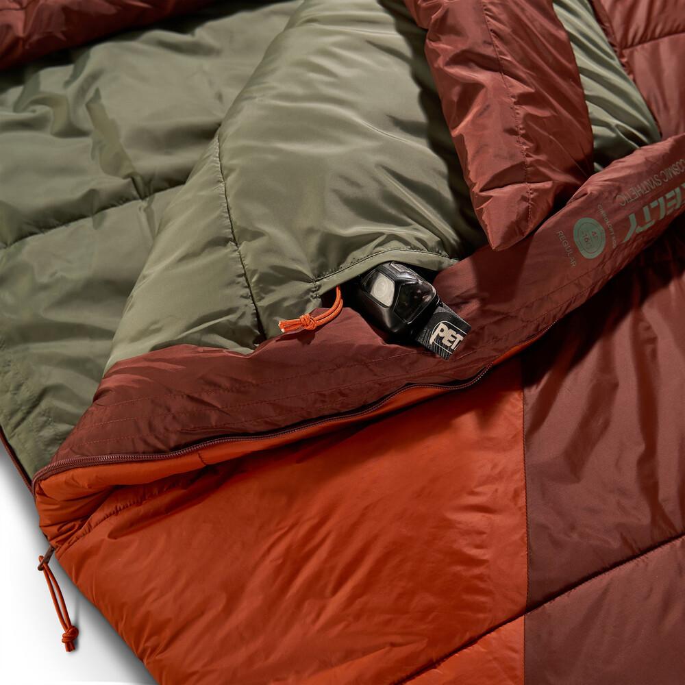 You shouldn't have to move heaven and earth to sleep under the stars! That's why we made the Cosmic Synthetic light in your pack and easy on your budget. This three-season superstar is constructed of fully recycled fabrics and fill-with a durable nylon shell, silky taffeta liner, and CirroLoft Eco insulation for lightweight, compressible warmth. A zippered stash pocket keeps track of keys and tech, and an extra-roomy footbox treats your hard-working dawgs with the utmost care.