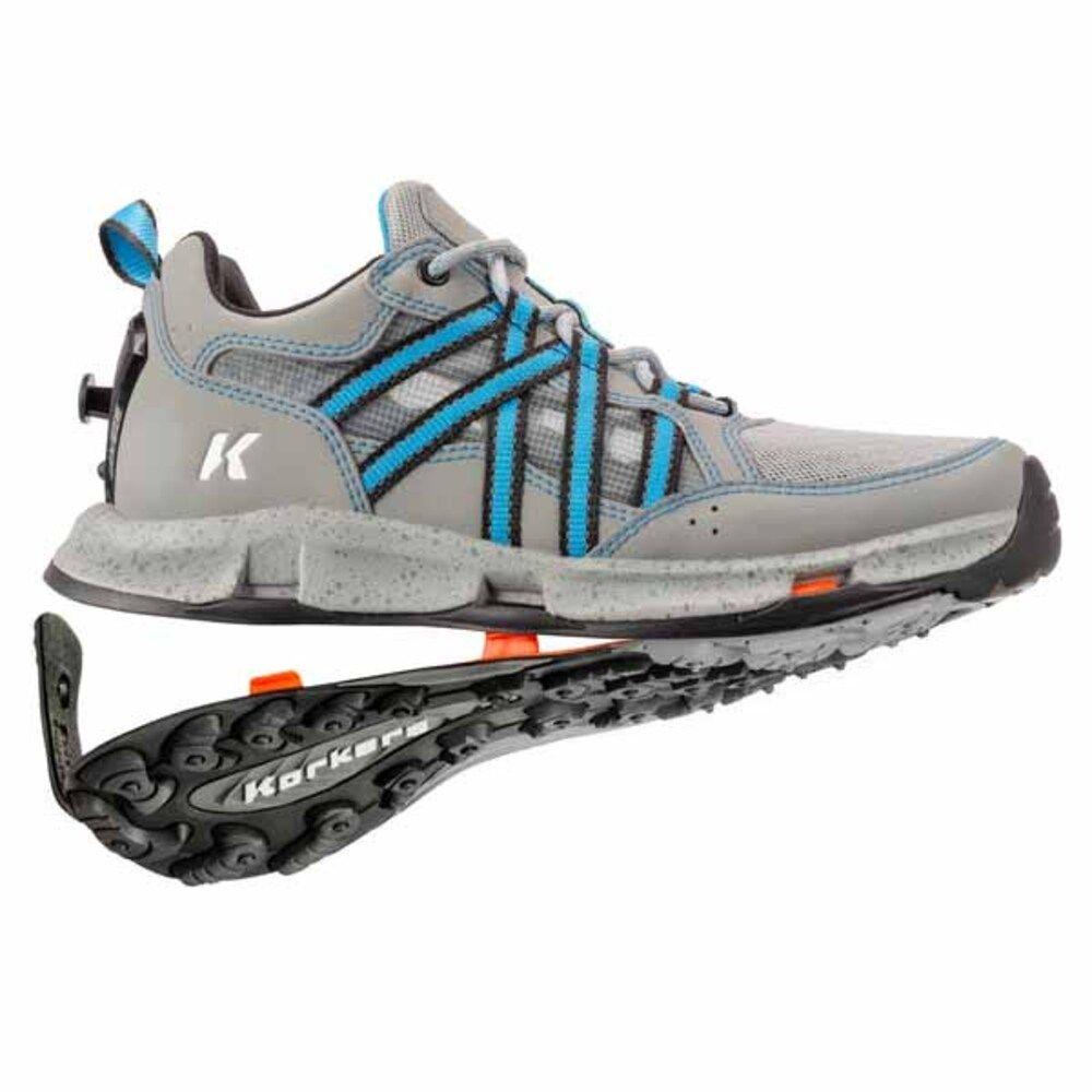Korkers creates all terrain footwear featuring patented adaptable traction that allows outdoor enthusiasts to optimize their traction performance in varying conditions in and out of water.