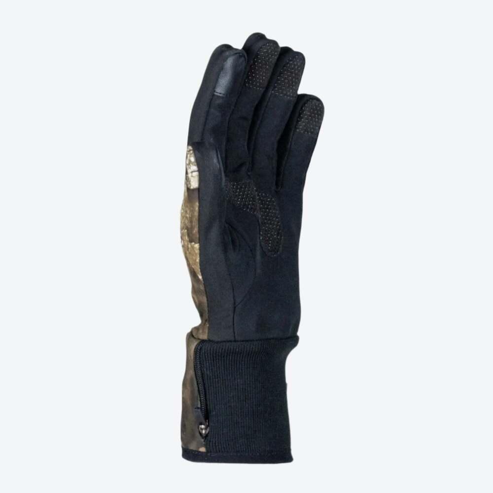 Stay warm without sacrificing dexterity. The APX Mid-Weight Heated Glove features a slim-fit design with 4-way stretch polyester, a DWR finish, and built-in odor control to keep you concealed and comfortable. Heat coils wrap around the fingers and thumb for targeted warmth, while reinforced palms with anti-slip grip provide control in any condition. Touchscreen-compatible fingertips let you stay connected without removing your gloves-ideal for cold hunts where every movement counts.