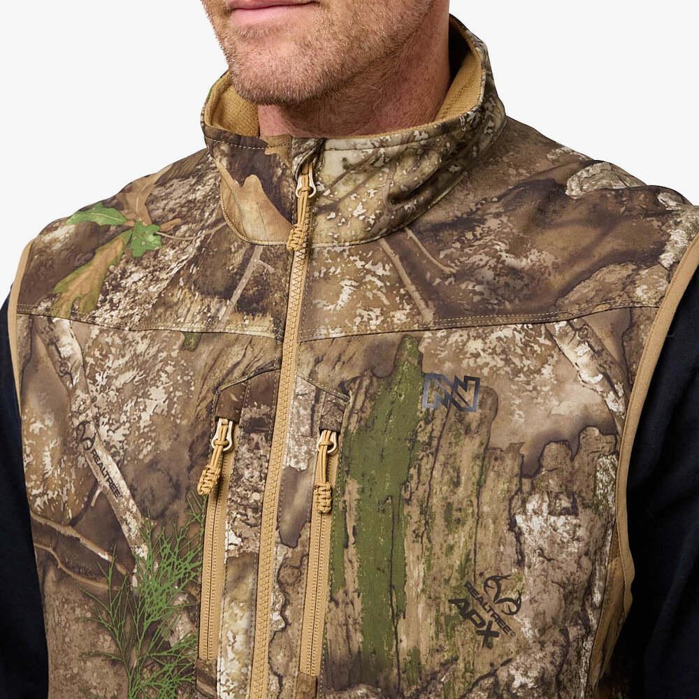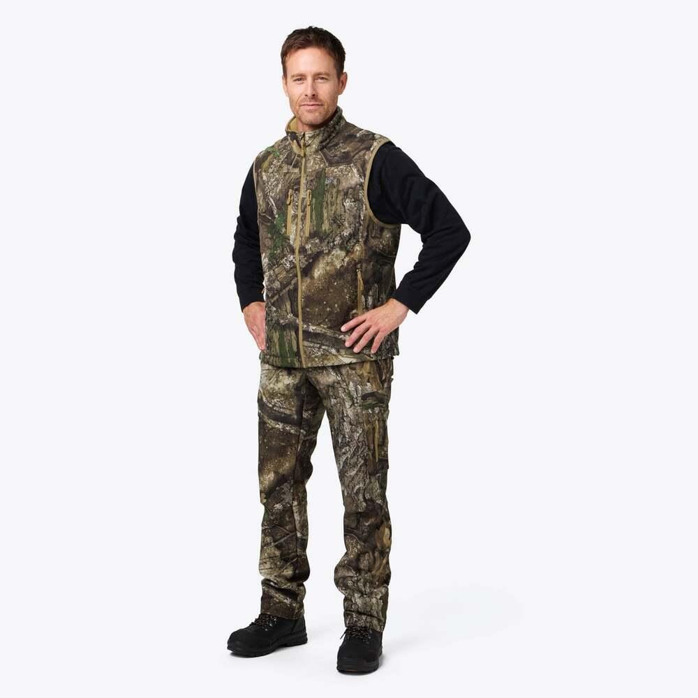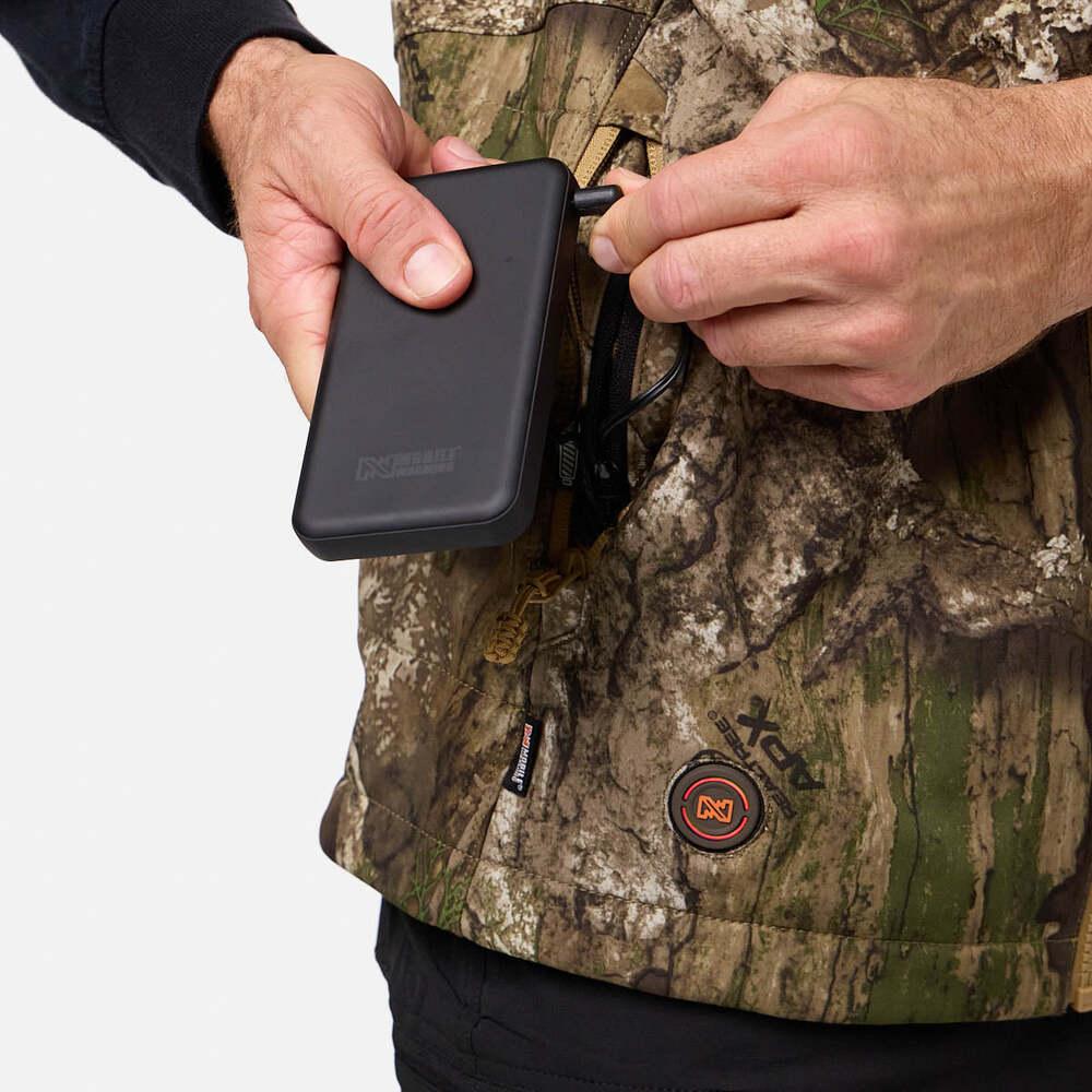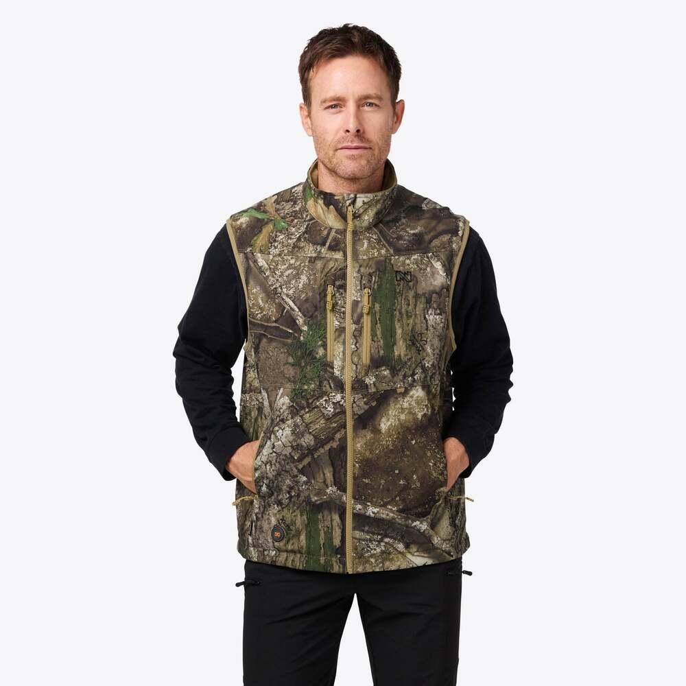 Stealth, comfort, and core warmth-right where you need it. The APX Heated Vest features a Realtree APX camo pattern with a silent 4-way stretch shell and DWR finish to handle harsh conditions without giving you away. A breathable grid fleece lining and high collar lock in heat, while 5 heat zones keep your core warm during long sits or active pursuits. With YKK zippered chest and hand pockets, this vest is built for layering, mobility, and staying focused in the field.