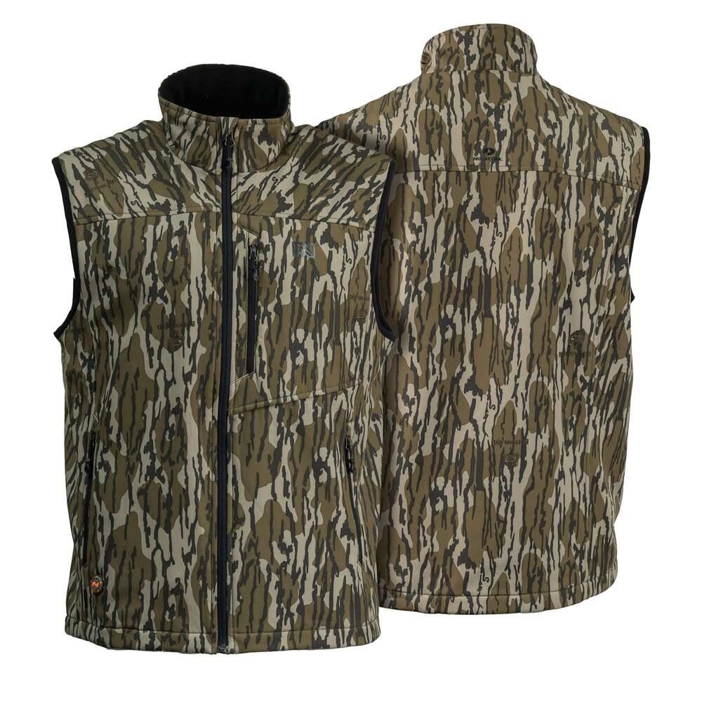The Mobile Warming Mossy Oak BLX Heated Vest is ideal for cold mornings, and big temperature swings throughout the day. Our multi-zone heated vest easily fits under a jacket reducing the need for layering, or wear over a shirt or hoodie on moderate cool days. The Mobile Warming heating system, with 4 adjustable temperature settings, will provide hours of warmth and comfort so you can stay out longer and not be a victim of the weather. Available in Mossy Oak's classic Bottomland pattern. Made with 4-Way stretch low noise fabric, DRW water resistance finish, and a high neck collar for added protection with a soft fleece interior added for superior comfort. And lots of storage with zippered chest and front pockets. Powered by a 7.4v Rechargeable Lithium-Ion battery, delivering up to 135°. This season be ready no matter what mother nature throws at you.