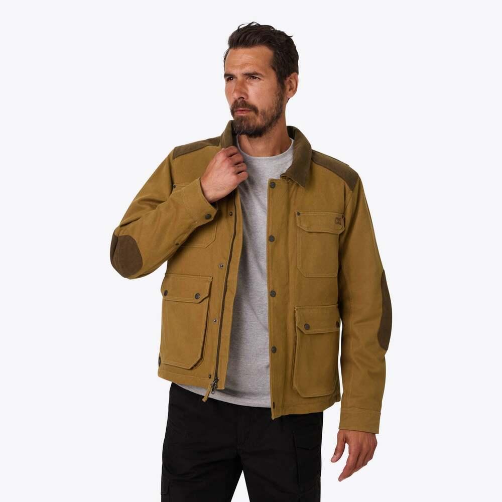 Our take on the classic chore coat that sits slightly below the waist. Premium materials and great styling. Contructed from Smith & Rogue Original Canvas hemp outershell, abrasion and DWR water resistant finish (PFC/PFAS free), it has a soft broken-in feel right from the start. Thick fleece lining, ample storage both outside and in, custom metal buttons and a durable YKK metal main zipper combine with our Powersheer XL multi-Zone heating system to create the perfect 3 season jacket with extra umph when you need it the most on cold winter days.