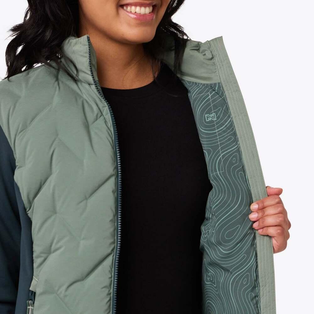 Engineered for motion, styled for the everyday. The Aria Hybrid Heated Jacket delivers targeted warmth with four heat zones and a lightweight down blend that won’t weigh you down. The contrast sleeves and side panels flex with your movement, while the heat-seal embossed pattern and two-tone design bring modern edge to trail-tested function. Perfect for crisp hikes, travel days, or layering up when the temperature drops.