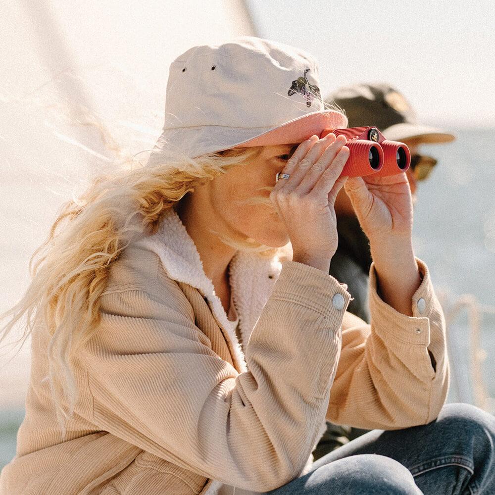 Top shelf optics in a compact, rugged housing. Designed from the ground up as the perfect travel binocular, able to keep up with any adventure. Bright colors so you wont misplace them - or look like a spy.