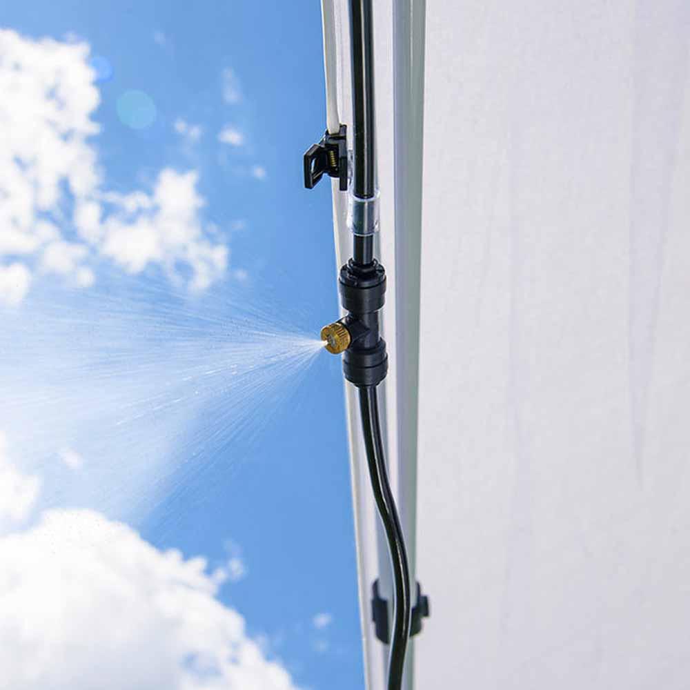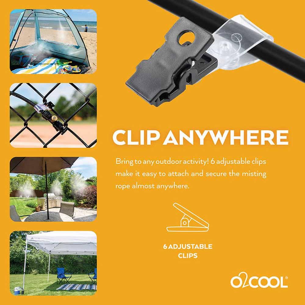- 25 FT & 6 Sprayers: Includes 20ft of rope and 6 sprayers. Plus an additional 5ft to easily lengthen the rope. Sprayers can be added or removed. Clips are included to hang the misting system.