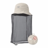 This sun bucket has a no-see-um headnet that protects your face and neck from insects. It can be rolled up over the brim of the hat or tucked under the crown when it's not needed. The entire hat can be stuffed into a hidden pocket in the crown when it's time to pack up.