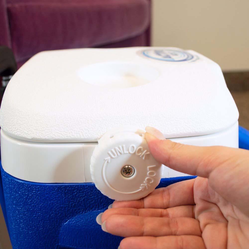 - The cooler lid on the unit is hinged and snaps in place, keeping it properly sealed. No mess!