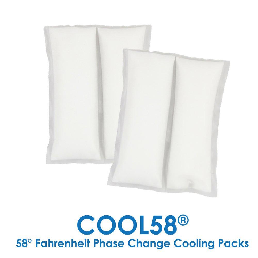 - Your Choice of Cooling Technology: Choose between our best selling Kool Max frozen water-based cooling packs or our Cool58 phase change packs! Kool Max packs require access to a freezer and offer the highest level of cooling energy, while Cool58 cooling packs freeze solid at a moderate and comfortable temperature of 58° Fahrenheit, so they can be activated in a freezer, refrigerator, or even a bucket of ice water. See full comparison of the cooling pack technologies in the "How Does it Work?" section. The vest will hold six (6) 4.5" x 6" Kool Max Packs or six (6) 4.5" x 6" Cool58 Packs. See the size chart for more information.