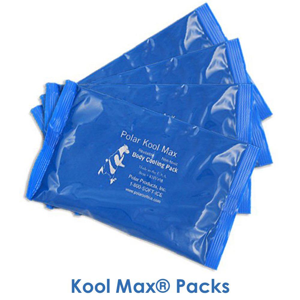 - Kool Max frozen water-based cooling packs require access to a freezer and offer the highest level of cooling energy. It takes more energy to charge these packs in a freezer and in return, the packs offer greater cooling energy than Cool58 cooling packs.