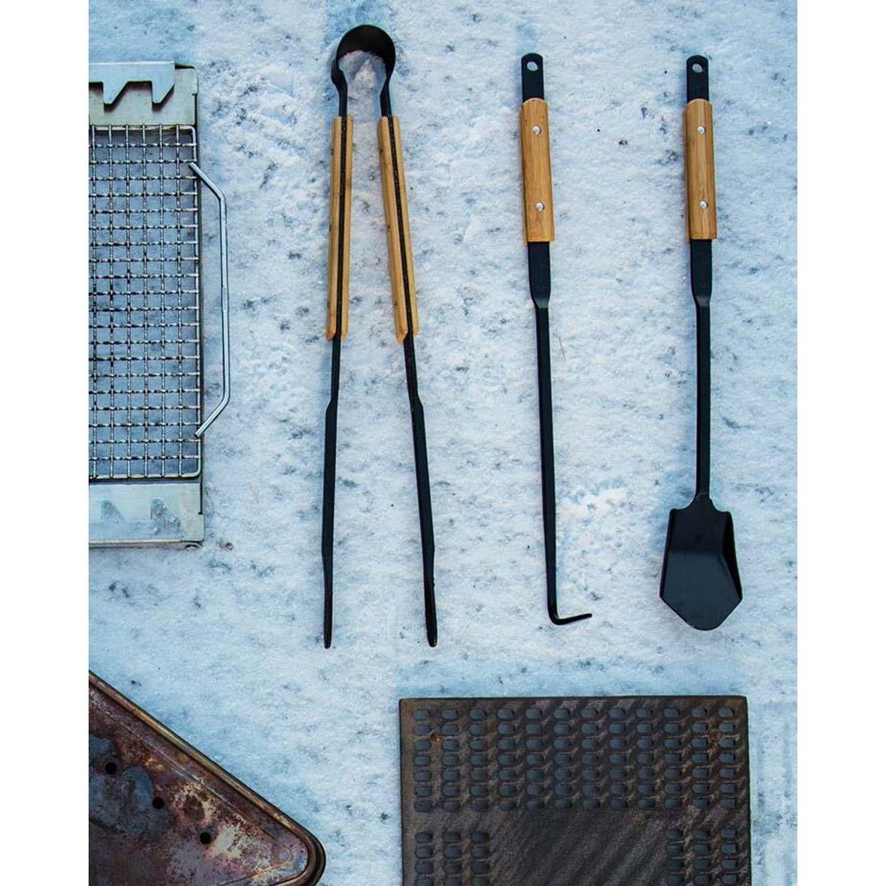 - Use the Fire Tool Set to safely tend the fire and coals.