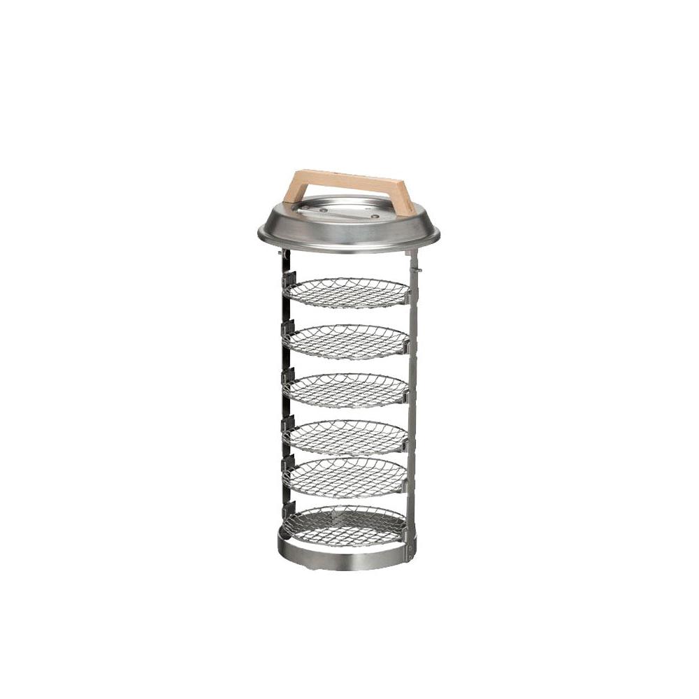 - Contents: Container, Stand Frame with Lid, Grill Net x 6, Saucer, Inner Cylinder, Storage Case