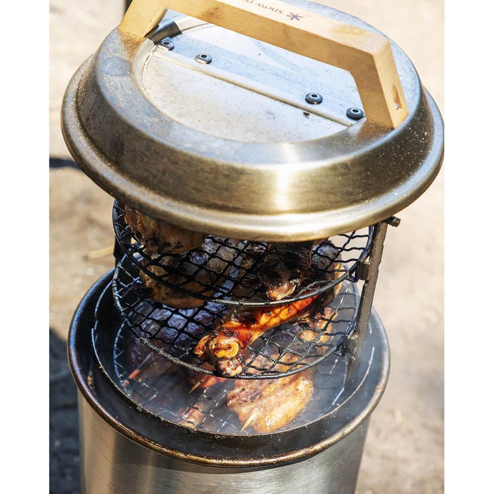Designed in Japan, the Smokemeister is a compact smoker. The body of the Smokemeister is made of stainless steel with a natural wood handle. Use it for backyard barbecues or campfield cookouts to create a variety of smoked goods. To use, add wood chips and a few hot coals to the bottom of the smoker, then stack meats, fish, or vegetables on the nets. The Smokemeister features a stand frame, six nets, a juice pan, and a storage case, as well as an adjustable lid for controlled ventilation. Pair the Smokemeister with the Folding Torch and Barbeque Tongs for a complete cooking set-up.