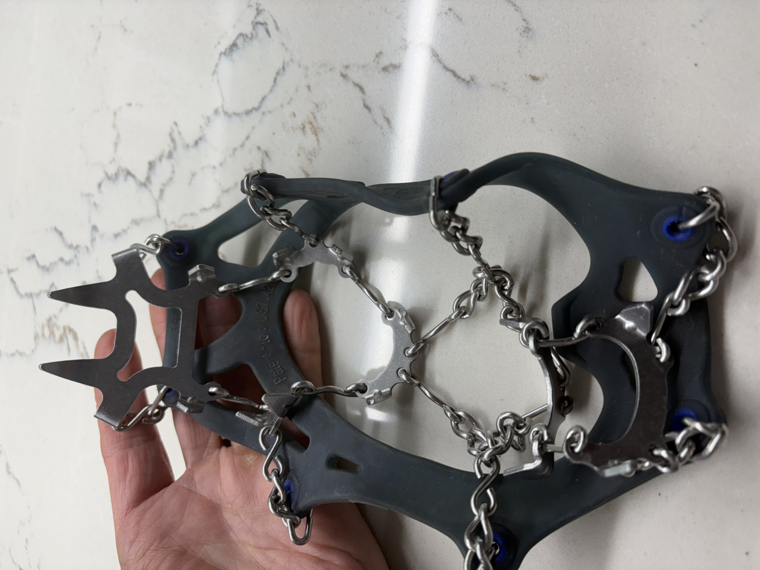 A new concept for chain/spike traction with the aggressive grip of full crampon plates integrated with our most burly elastomer. Available in 5 sizes from S-XXL.