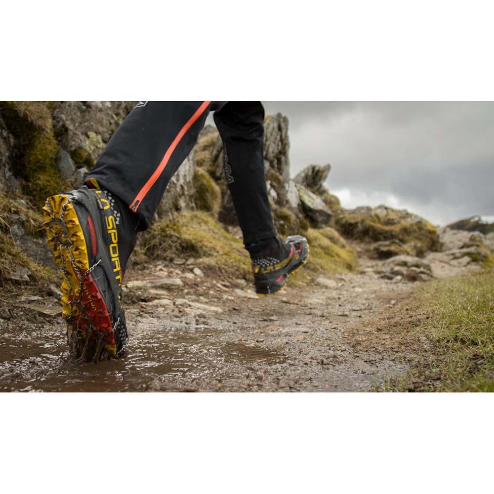 The snowline Spikes TRAIL model impresses with its low weight of just 170g per pair (size M) and its tiny pack size. 7.5mm long spikes ensure safety and grip on icy trails and hard snow. But the snowline Spikes TRAIL aren't just for winter use. They also significantly increase surefootedness in summer on slippery and muddy trails and debris-covered paths, resulting in noticeable energy savings.