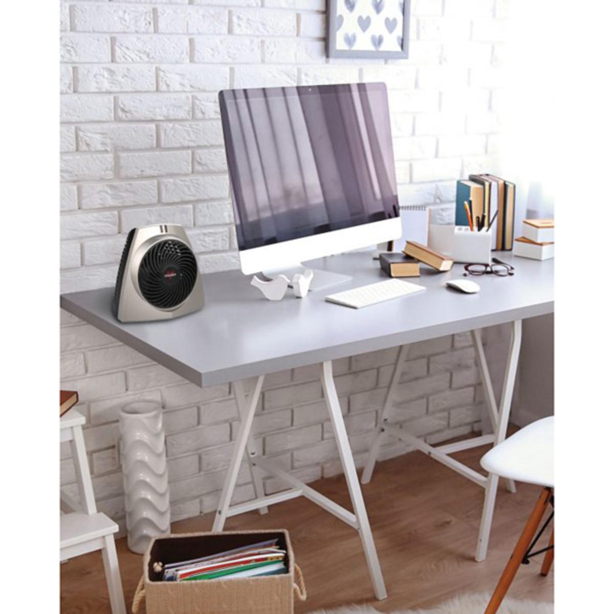 Unlike Vornado\x92s whole room heaters, the VH203 is designed to circulate heat specifically around your personal space - making it perfect for desktop, tabletop or under desk heating applications. The surprisingly powerful, yet quiet fan wraps you in comfortable superheated air. The VH203 offers noticeable performance from a minimal footprint. Because the VH203 is a Vornado, it features powerful deep pitch fan blades, and advanced safety features such as tip over/heat overload protection and a cool-touch cabinet. Two heat settings allow you to customize your desired heating level, as well as toggle energy consumption between 375W and 750W to avoid the inconvenient circuit overloads that larger heaters can create. With the VH203 - Vornado takes your winter comfort personally.